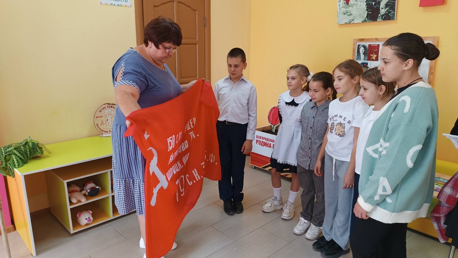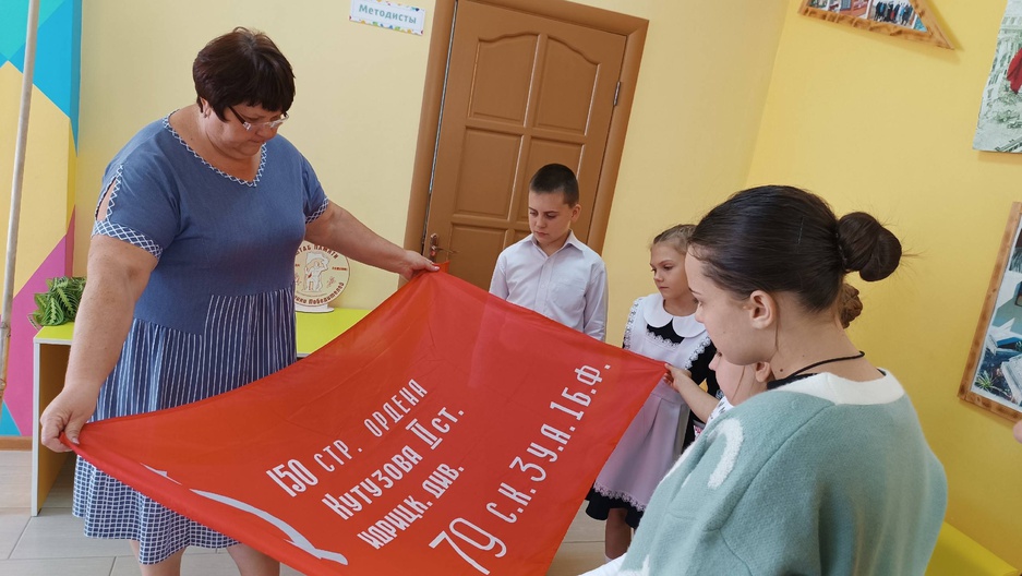 На одной из творческих площадок ЦКР п. Пятницкое прошла информационная беседа «Знамя, ведущее к подвигу», посвящённая вручению первого гвардейского Знамени первой стрелковой дивизии. Участники обсуждали значение знамени, его роль в истории. Важно помнить и хранить память о подвигах героев!.