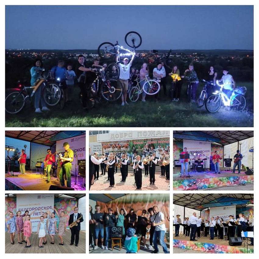 «Велопокатушки» – музыкально-световое шоу участников Клуба «Веломания» и любителей велоезды одна из самых увлекательных и зрелищных творческих акций. Участники путешествовали по ночному поселку на велосипедах, оснащенных световым оборудованием. Подъем на меловую гору, показал красоту родного поселка в ночных огнях. В День флага РФ совершили велозаезд по маршруту: стадион п.Пятницкое – Родник здоровья – памятник «Самолет» п.Волоконовка – п.Пятницкое.