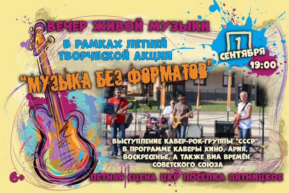 "Музыка без форматов" - вечер живой музыки с участием кавер-рок-группы "СССР" с. Нижние Лубянки