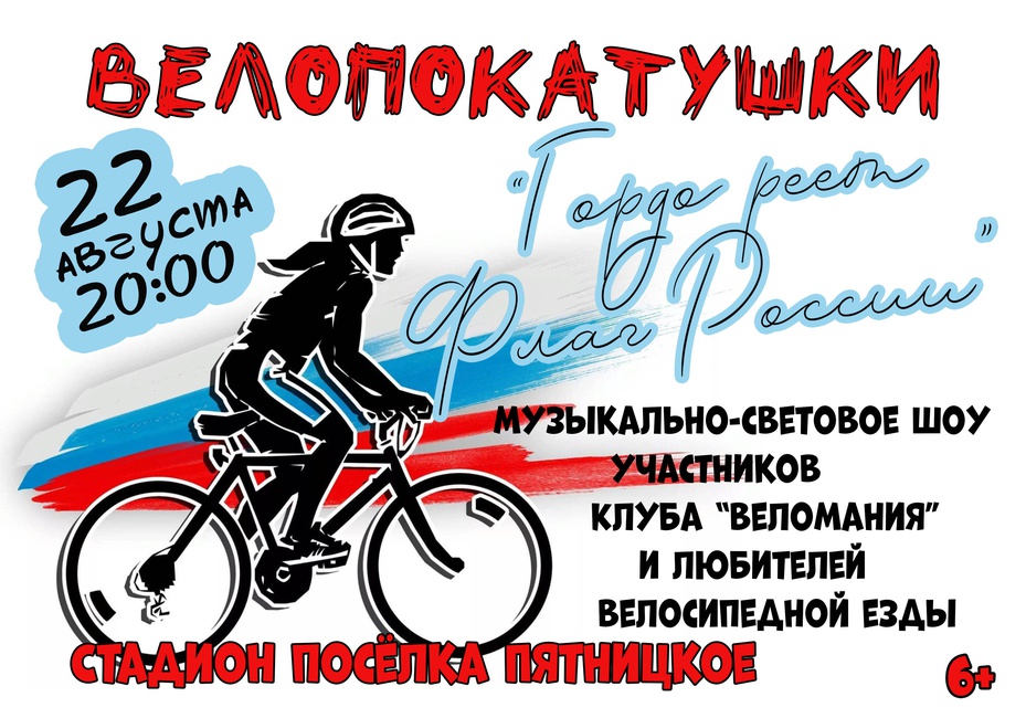 "Гордо реет флаг России" - световое шоу-путешествие "Велопокатушки" участников Клуба "Веломания" и любителей велосипедной езды в День Государственного флага РФ